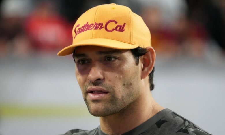 2 de diciembre de 2022; Las Vegas, NV, Estados Unidos; El ex mariscal de campo Mark Sánchez, California California, participó en los campeones PACK -12 en el estadio aligente. Crédito obligatorio