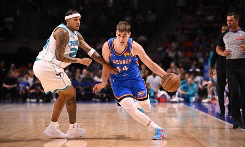 El hombre de 20 años en Serbia proporcionó 10 puntos y siete asistencia en la prisión de la ciudad de Oklahoma contra Charlotte Hornets el domingo.