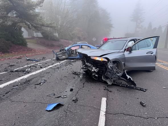 Dos vehículos resultaron dañados en una colisión frontal en el suroeste de Portland el sábado por la mañana, y los equipos de Bomberos y Rescate de Portland respondieron al accidente mientras limpiaban un incendio en el vecindario de Maplewood.