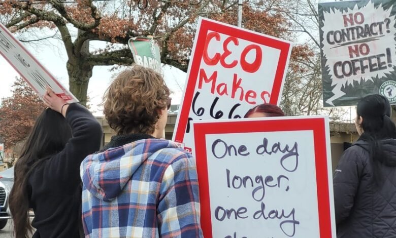 Los trabajadores de Starbucks en el área de Portland continúan en huelga por un contrato justo