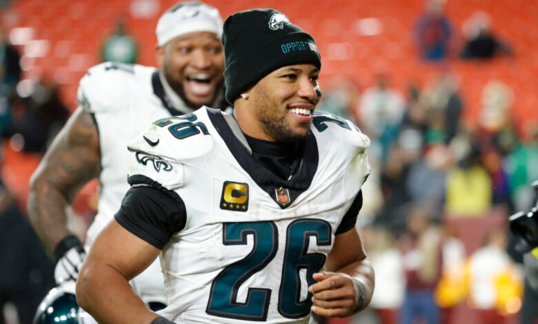 Los Philadelphia Eagles necesitan sólo una victoria en sus últimos tres juegos para convertirse en los primeros campeones repetidos de la NFC Este en la región. dos décadas . Como lo han hecho tantas veces durante las últimas dos temporadas, los Eagles pusieron el balón en las manos de Saquon Barkley cuando más importaba.