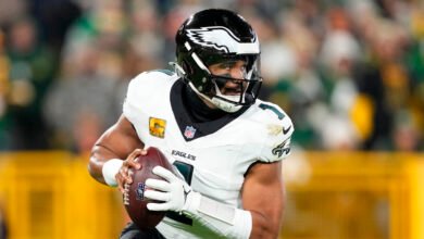 jones ganó 5-3 mientras Purdy lidia con la persistente lesión en el dedo del pie que sufrió en la Semana 1 y luego se agravó en la Semana 4. Según Referente del fútbol profesional, Jones entró al fin de semana en el décimo lugar de la NFL entre los jugadores calificados con un QBR ajustado de 64.9, segundo con un promedio de 268.9 yardas aéreas por juego y tercero con 53.4%. pasar exitosamente Tarifa para la temporada.